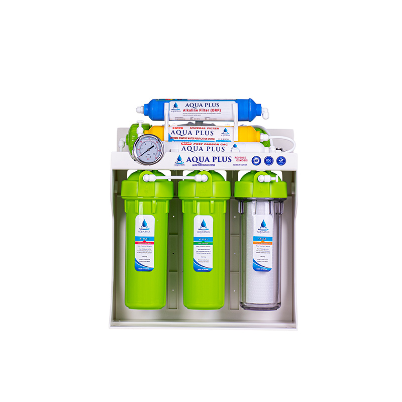 دستگاه تصفیه آب شش مرحله ای خانگی آکوا پلاس (PI1-ORP) با سیستم اسمز معکوس RO (ساخت کشور تایوان) در طی 7 مرحله توسط 7 فیلتر آب را تصفیه میکند.